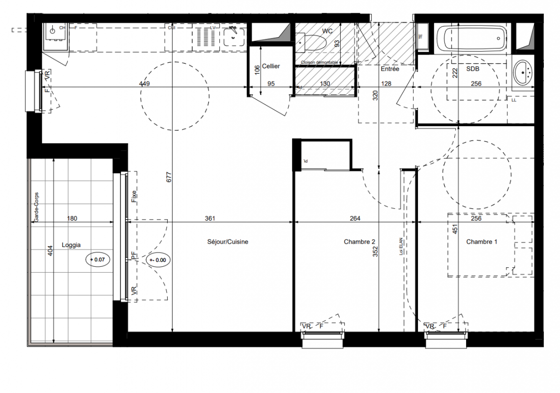 244 000€ Appt. T3 64.2m2 0-RDC