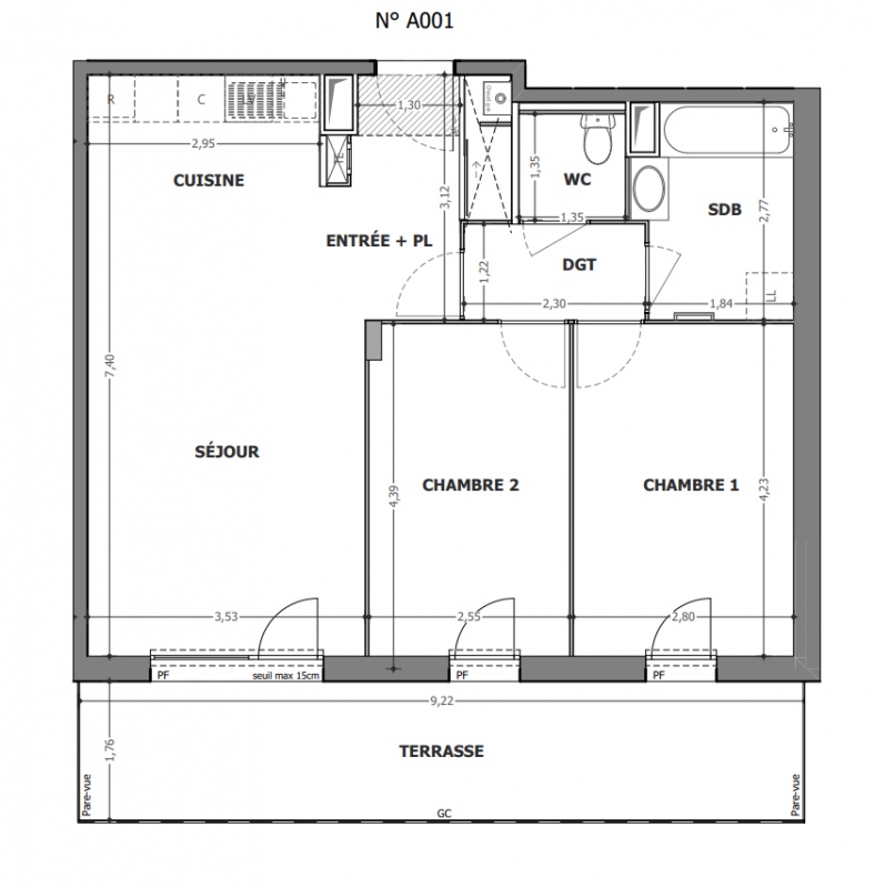 | Voir | Disponible | 241 400€ | A101 | Appt. | T3 | 62.82m2 | 1er | Disponible | 241 400€ | Voir |