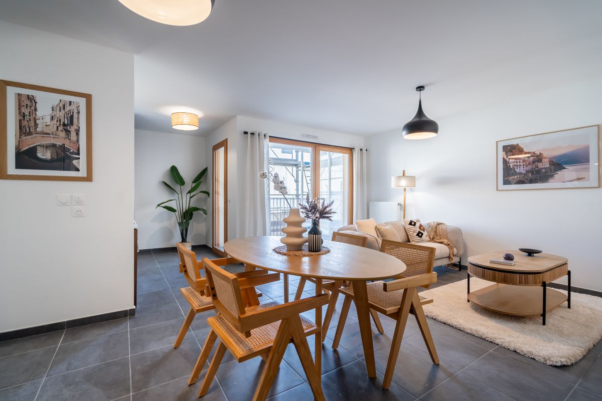 Dernier appartement 3 pièces disponible à LYON 8ème, en LIVRAISON IMMEDIATE ! Venez visiter notre appartement décoré et vous projeter dans votre futur chez vous ! Situé sur la rive gauche du Rhône, le 8e arrondissement de Lyon offre un cadre de vie paisible à proximité immédiate du centre-ville. Ce secteur prisé séduit par son équilibre entre tranquillité résidentielle et dynamisme urbain, avec une desserte exceptionnelle grâce aux nombreux transports en commun. Idéalement implantée, Programme neuf Lyon 8ème (69008) bénéficie d’un emplacement stratégique, proche de tous les essentiels du quotidien. À moins de 6 min* en voiture, vous trouverez commerces alimentaires, pharmacie, boulangerie, services bancaires et bureau de poste. Les familles apprécieront la proximité d’un large choix d’établissements scolaires, de la crèche au collège, situés à seulement 3 min* en voiture. Pour l’enseignement supérieur, la prestigieuse faculté de médecine est accessible en 13 min* à vélo. Les transports publics assurent une mobilité fluide avec les lignes de tramway T2 à 6 min* et T4 à 4 min* offrant un accès rapide à l’ensemble de la ville et aux communes voisines. Un réseau de bus efficace complète cette offre, garantissant des liaisons directes vers les différents pôles économiques et culturels de la métropole. Répartis sur 4 étages, les derniers appartements disponibles, du 3 au 4 pièces, s’ouvrent sur des espaces extérieurs privatifs : balcons, jardins ou terrasses. En attique, des logements d’exception, prolongés par de vastes terrasses, offrent un cadre de vie unique réservé à quelques privilégiés. Pour assurer votre confort et votre sécurité, la résidence dispose d’un parking en sous-sol et d’un local à vélos. Contactez vite un de nos conseillers pour profiter de cette dernière opportunité !