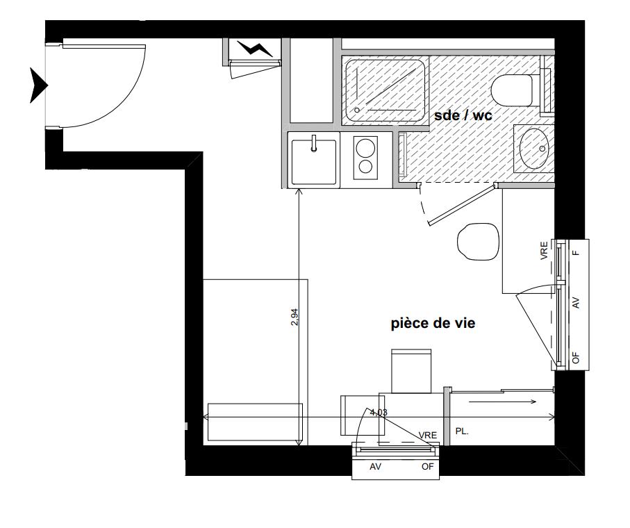 Les studios tous meublés et équipés, sont complétés par des espaces partagés : cuisine et salle commune, terrasse paysagée et laverie.