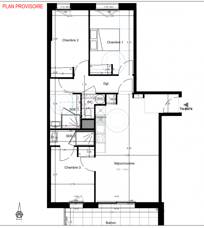 220 417€ Appt. T4 75.06m2 3ème