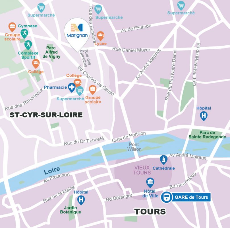 Venez vous projeter dans notre logement décoré et profiter de notre offre exclusive du moment !Du studio au 4 pièces, les appartements offrent, pour certains, de belles orientations Sud ou Est-Ouest, tandis que d'autres bénéficient de plans traversants. Les pièces de vie, généreuses et conviviales, s'ouvrent toutes sur un espace extérieur agréable jardin privatif, balcon ou terrasse pensé comme une véritable pièce supplémentaire.Répartie sur deux bâtiments, la résidence conjugue avec harmonie des matériaux nobles et des touches contemporaines. Niché au cœur de l'ensemble, un jardin paysager invite les habitants à évoluer dans un environnement bucolique. Conçu dans l'esprit des villas cossues qui font le charme de la ville, ce véritable havre de verdure est ponctué de cheminements piétonniers et dégage une atmosphère sereine et apaisante.Située dans la commune la plus prisée de la métropole tourangelle, la résidence s'implante au sein d'un quartier résidentiel recherché, offrant un équilibre idéal entre calme et animation. Les arrêts de bus Épinettes à 120 m* et Guynemer à 600 m*, ainsi que les supermarchés et le complexe sportif Guy Drut, accessibles dans un rayon de 1,5 km*, facilitent le quotidien. À une vingtaine de minutes du cœur de ville de Tours en bus ou en tramway, la résidence bénéficie également de la proximité d'une importante zone commerciale et de nombreux services.Contactez dès maintenant l'un de nos conseillers pour découvrir l'ensemble de nos appartements neufs à Saint-Cyr-sur-Loire et concrétiser votre projet immobilier pour 2026.