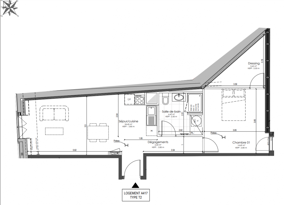 Ce programme comprend 74 duplex et appartements neufs. Ils sont de type T1, T1 bis, T2, T3, T3 bis, T4, T4 bis et T5 et peuvent faire office d'investissement locatif. Leur livraison est annoncée à la fin de l'année 2026 et ils sont éligibles au dispositif Malraux.