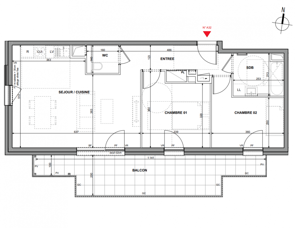 266 500€ Appt. T3 63.73m2 2ème