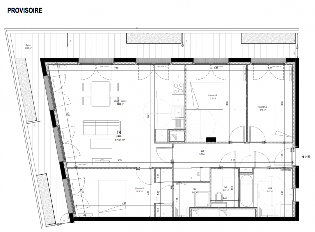 997 000€ Appt. T4 87.66m2 0-RDC