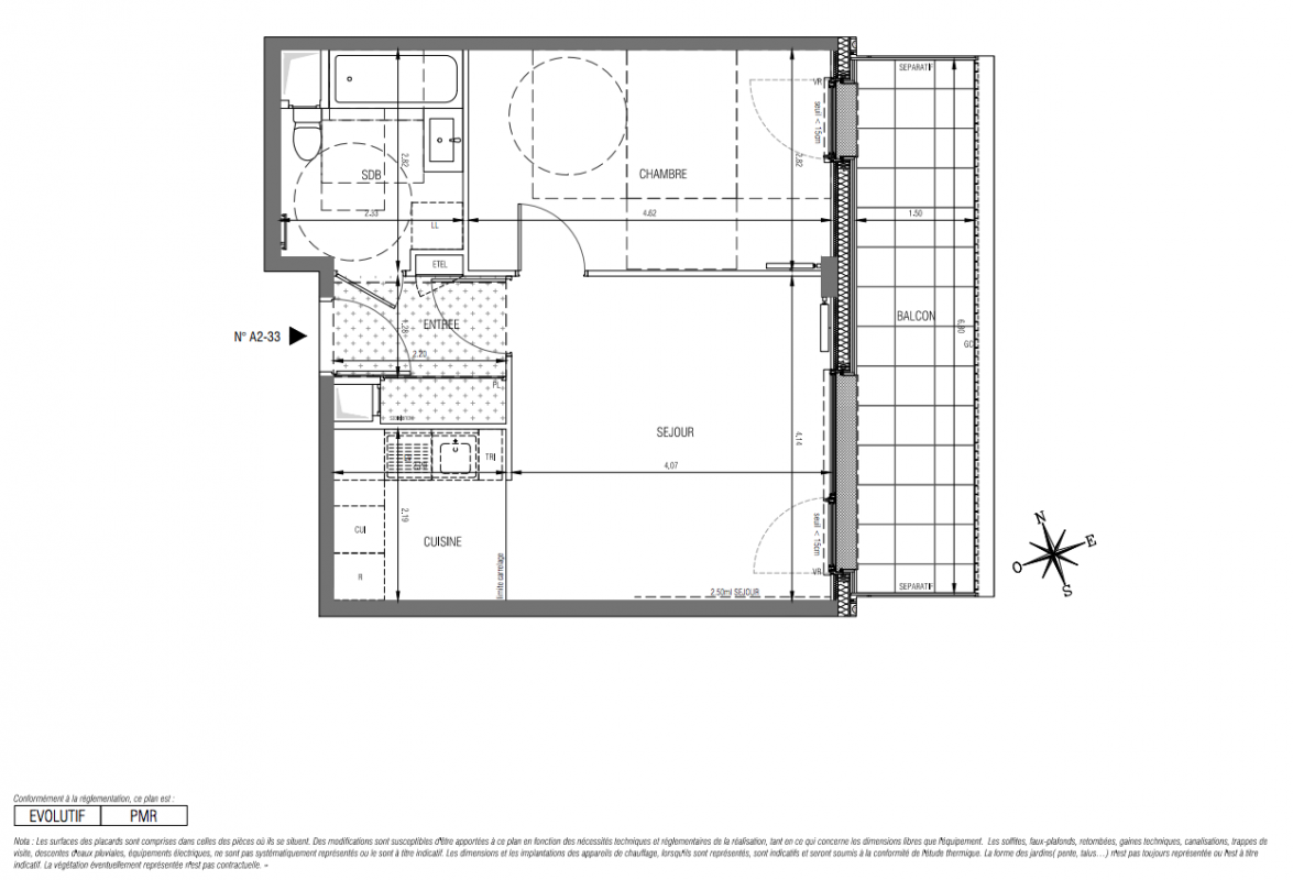 Cloisons épaisseur 7 cm dans l’ensemble des logements
