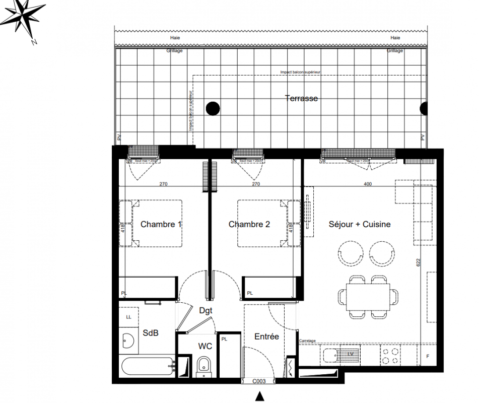 | Voir | Disponible | 373 000€ | C004 | Appt. | T3 | 59.1m2 | 0-RDC | Disponible | 373 000€ | Voir |