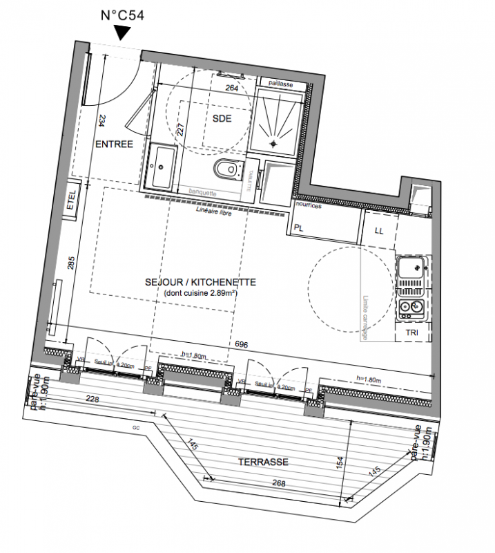 Portes intérieures des logements pleine hauteur 2.14m