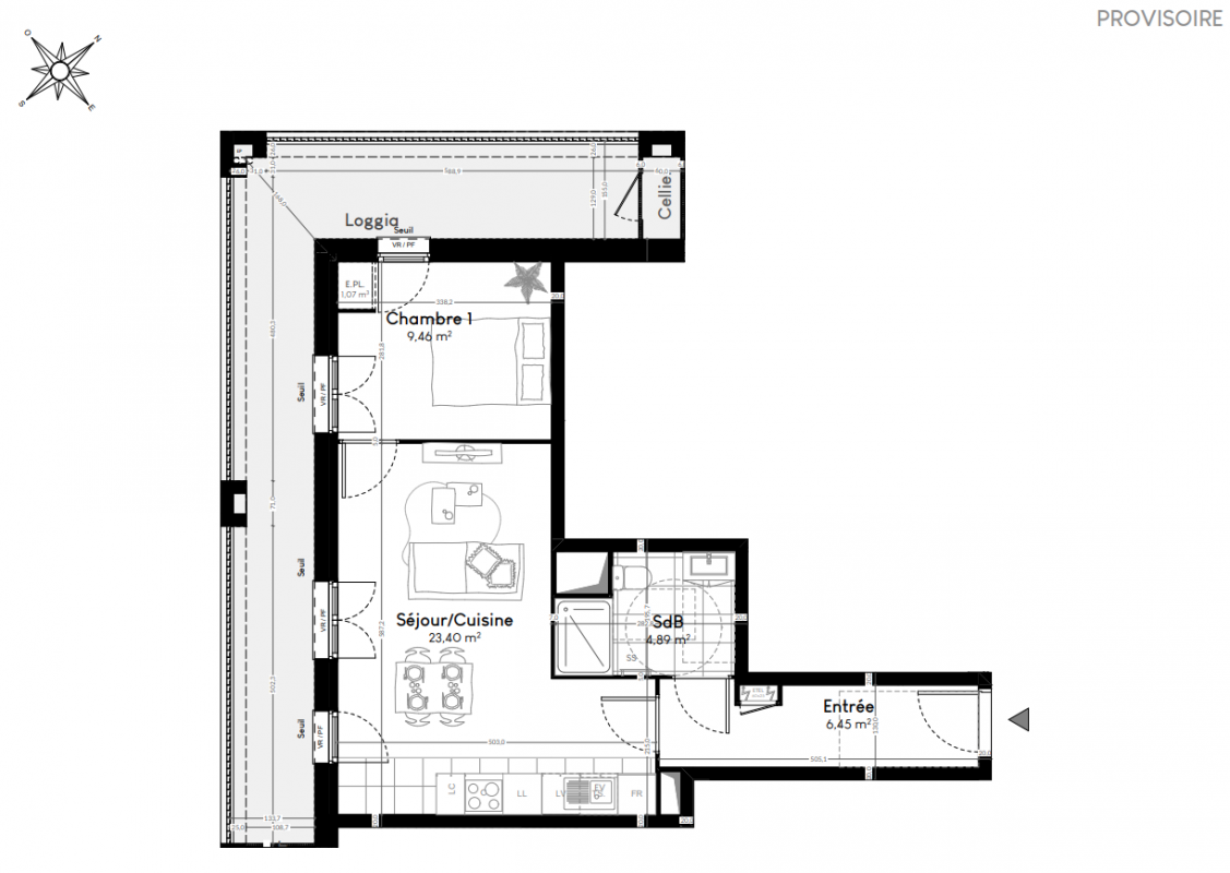 258 900€ Appt. T2 46.73m2 2ème