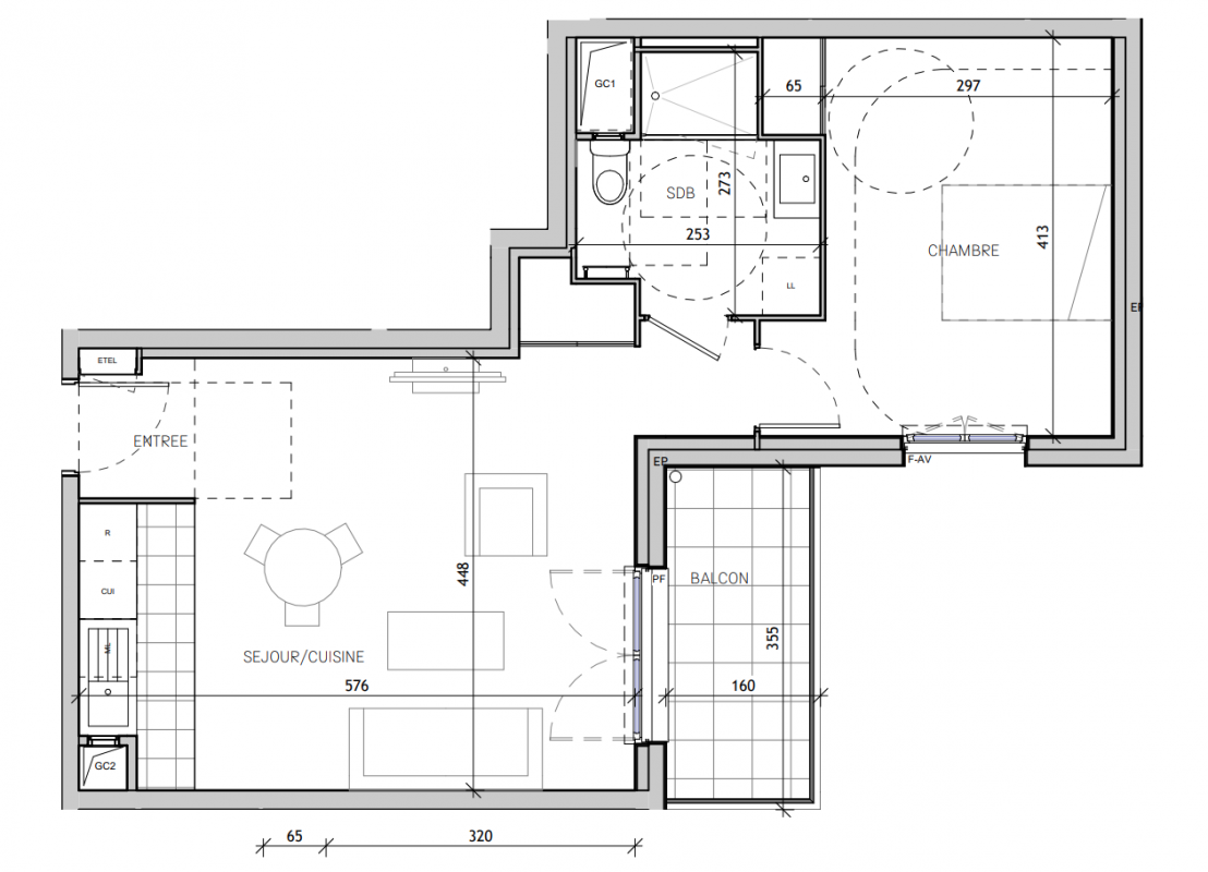 204 908€ Appt. T2 47.6m2 1er