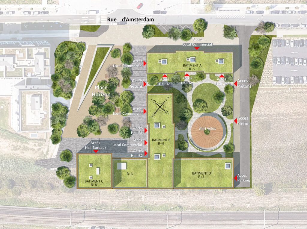Une architecture contemporaine et élégante parfaitement intégrée à son environnement. La résidence se compose de plusieurs bâtiments aux lignes modernes et raffinées, allant de 4 à 9 étages. Ils sont séparés par de larges ouvertures qui laissent entrevoir un jardin central paysager, véritable havre de verdure. Le choix des matériaux de qualité, tels que la terre cuite émaillée et l'enduit à la chaux, confère à l'ensemble un caractère harmonieux et durable.Un cadre de vie pensé pour votre bien-être. Les appartements, du 2 au 5 pièces, bénéficient d'agencements optimisés et lumineux, offrant des espaces de vie confortables et fonctionnels. La plupart sont traversants, avec une double voire triple orientation pour un ensoleillement optimal. Chaque logement dispose d'un espace extérieur privatif : balcon ou terrasse, selon les configurations.