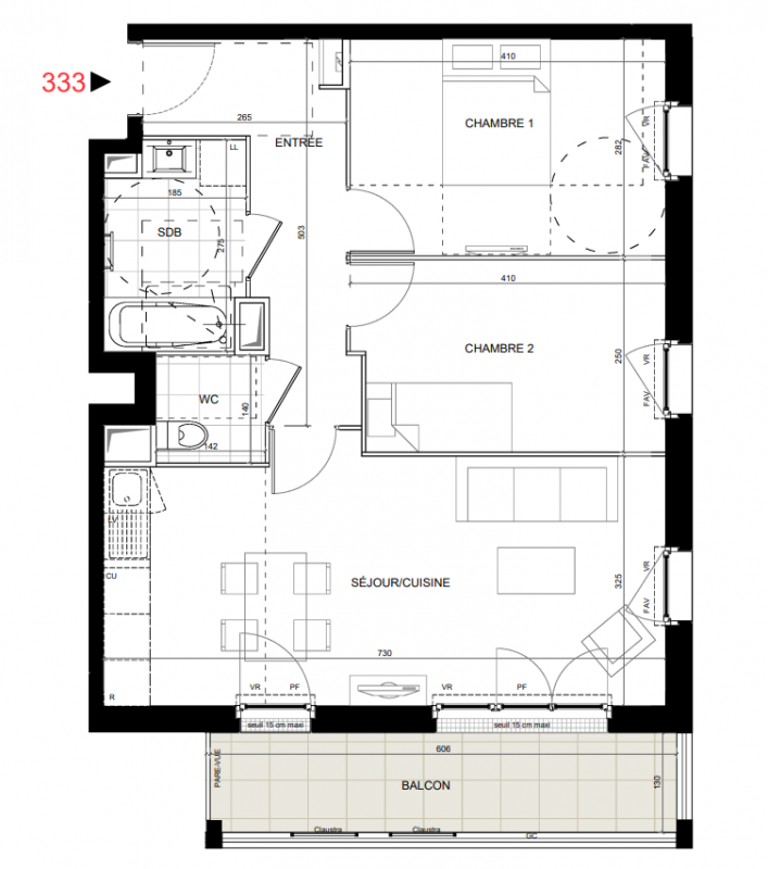 | Voir | Disponible | 265 024€ | 331 | Appt. | T3 | 63m2 | 3ème | Disponible | 265 024€ | Voir |