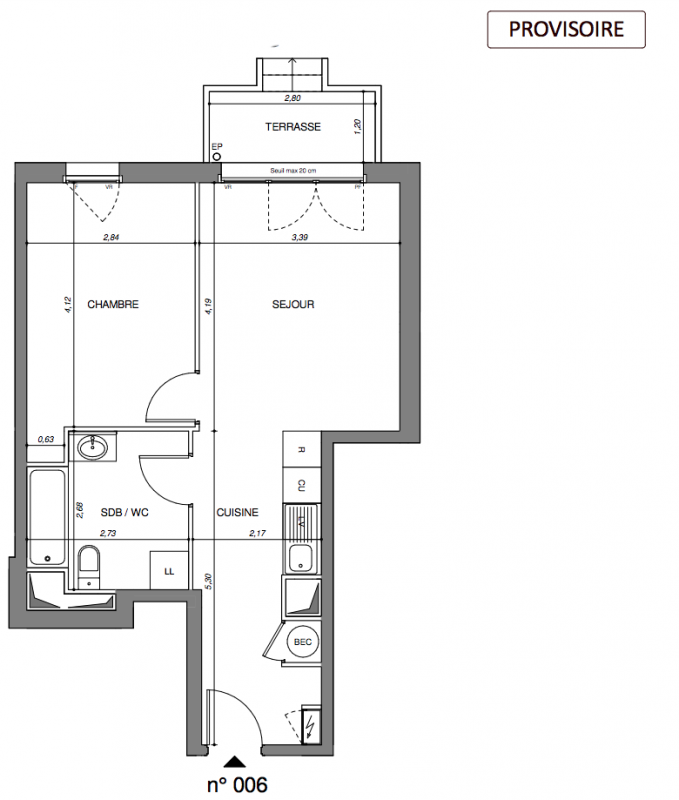 263 900€ Appt. T2 41.21m2 2ème