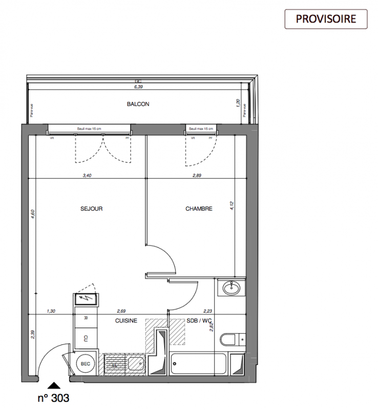 268 500€ Appt. T2 41.21m2 3ème