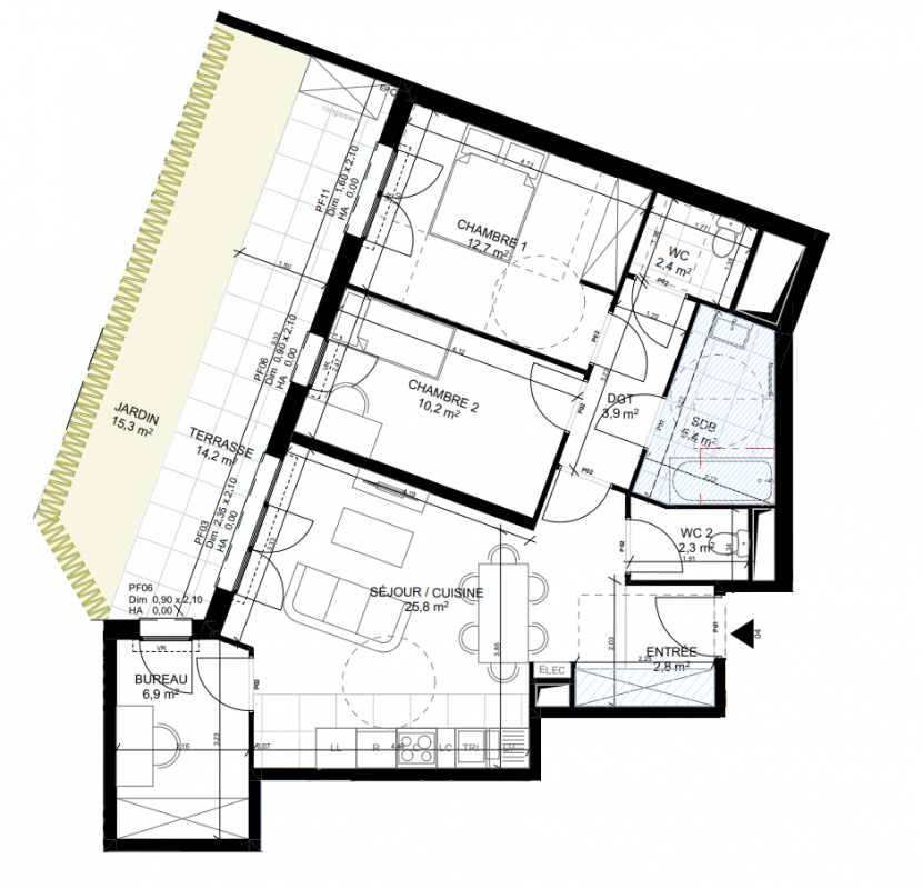 285 873€ Appt. T3 68.8m2 5ème