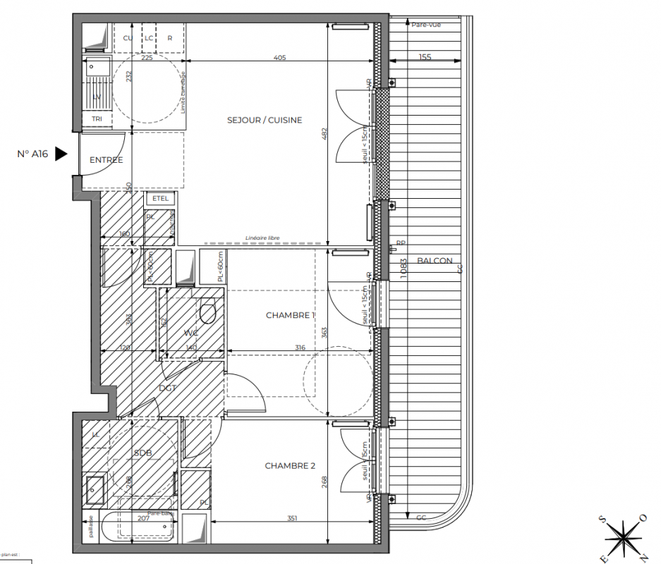 454 977€ Appt. T3 65.91m2 2ème