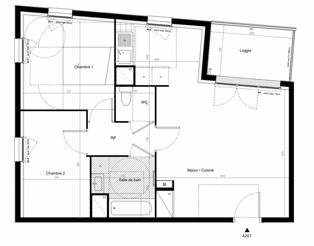 334 000€ Appt. - 62.2m2 0-RDC