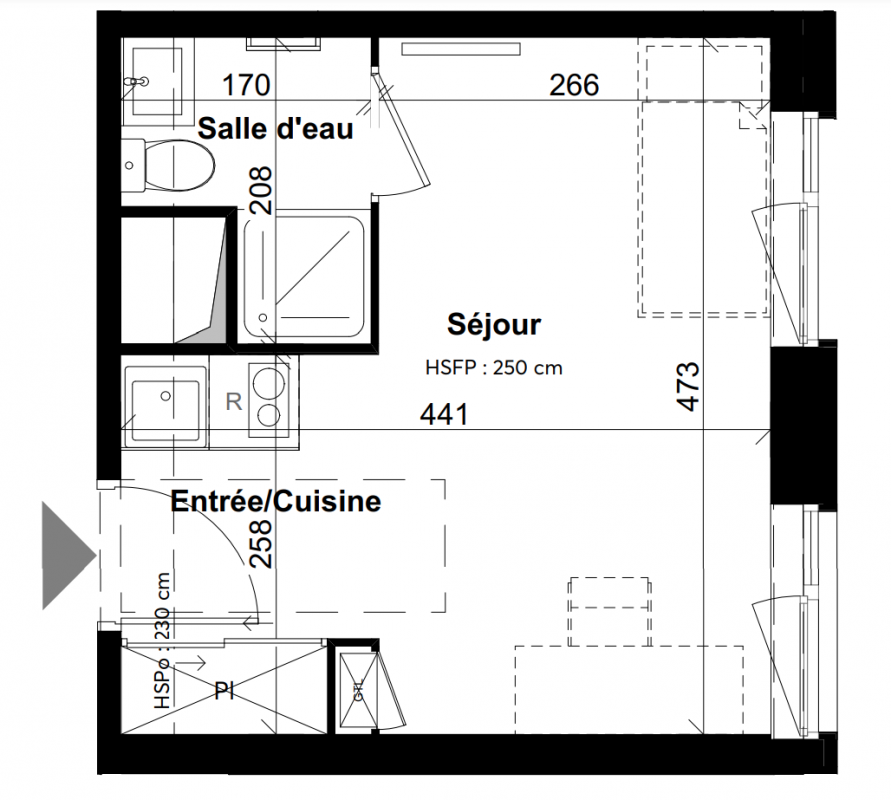 226 440€ Appt. Studio 23.13m2 4ème