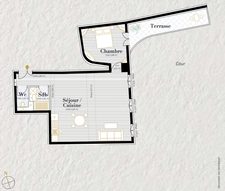Un ensemble patrimonial, un havre de paixL’ensemble immobilier, qui a abrité pendant plus de 150 ans la Chambre des Notaires de Charente-Maritime, fut édifié entre le XVIIIe et le XIXe siècle. Il arbore d’élégantes façades en pierres typiquement saintaises. Sa haute porte d’entrée s’ouvre sur une ravissante cour végétalisée, avec en arrière-plan un bâtiment auquel on accède par une galerie à colonnades du XVIIIe siècle. À l’intérieur aussi, les bâtiments révèlent de nombreux éléments patrimoniaux, qui seront restaurés avec soin afin de restituer toute la beauté des lieux : corniches, moulures au plafond, boiseries murales, parquet en bois massif dans les appartements et tomettes dans les parties communes, ferronneries, cheminées…Saintes, la dynamique ville d’Art et d’HistoireÀ seulement 30 minutes du littoral royannais et des plages océanes de Charente-Maritime, Saintes est une cité touristique réputée, au patrimoine architectural riche de 2 000 ans d’histoire, avec ses vestiges gallo-romains et médiévaux remarquables.Sur le plan économique, la commune s’affirme comme un centre tertiaire dynamique et un pôle commercial de dimension régionale : elle accueille, entre autres, le siège de la plus grande coopérative de consommateurs de France, Coop Atlantique.Bercés par la Charente et sa vallée verdoyante, les Saintais apprécient la douceur de vivre de cette commune connectée, à seulement une heure de l’aéroport international de Bordeaux ou de La Rochelle.• 62 000 habitants en métropole• 26 906 habitants en ville• 2e destination touristique de France (Charente-Maritime)• 3 millions de visiteurs chaque année (Charente-Maritime)• 10e des villes les plus attractives pour un investissement locatif (Masteos/Unkle, 2021)• 3,9 Milliards d'euros en 2022 pour la filière du Cognac• 26 482 emplois (Agglomération) pour la filière du Cognac• 50 min de La Rochelle en train• 1h29 de Bordeaux en train• 3h01 de Paris en train• 35 min des plages