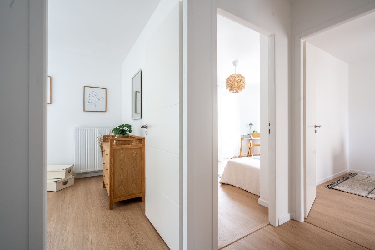 Choix parmi une sélection de revêtements de sols stratifié ou souple dans les pièces de vie et les chambresPlusieurs harmonies de faïence dans les pièces d'eauMen...