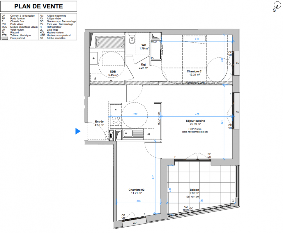 Ce 3 pièces de 63,66 m² habitables se compose d’un séjour-cuisine spacieux de plus de 25 m², de deux chambres confortables, d’une salle de bains indépendante et de WC séparés. L’appartement s’ouvre sur un balcon de 9,85 m², offrant un prolongement extérieur agréable au quotidien.